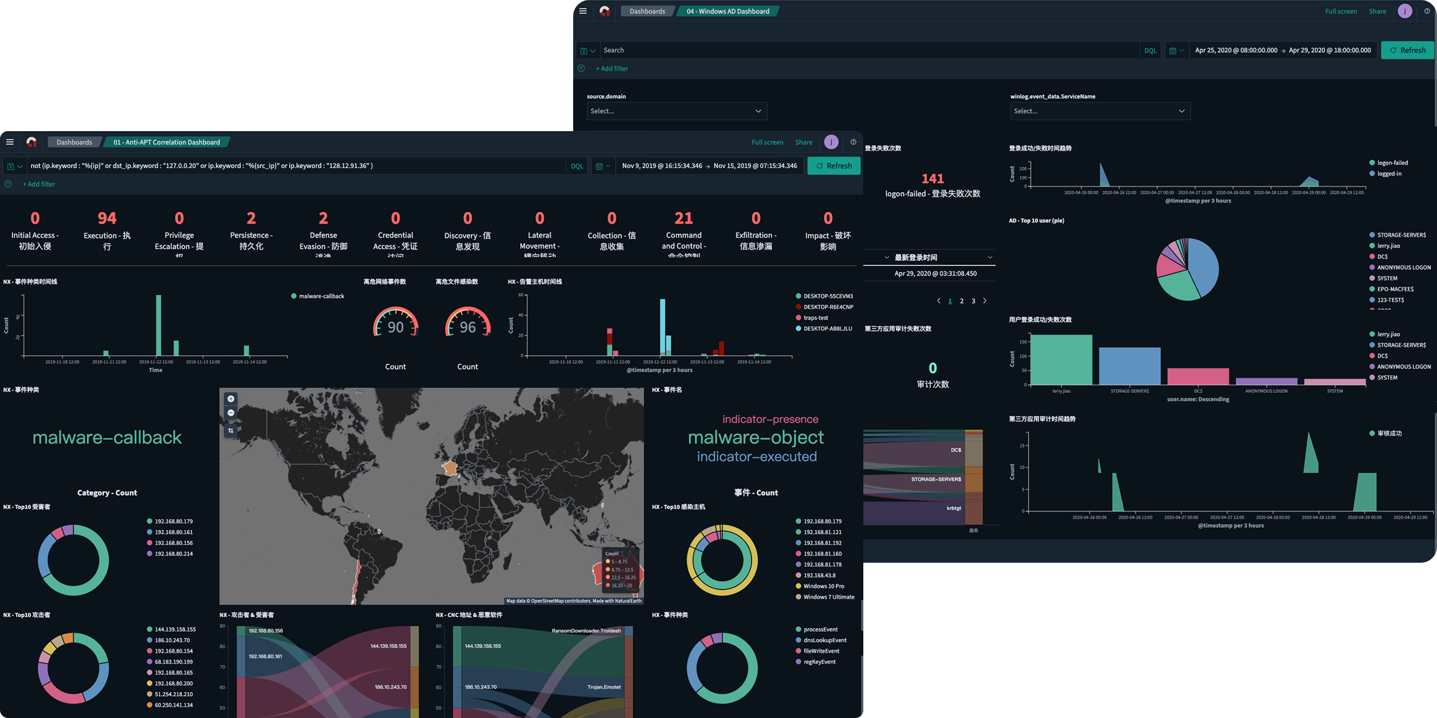 帮助单位构建统一的威胁监控、分析与响应模型,集中化展示告警和异常行为,让风险一目了然,洞察先于威胁。